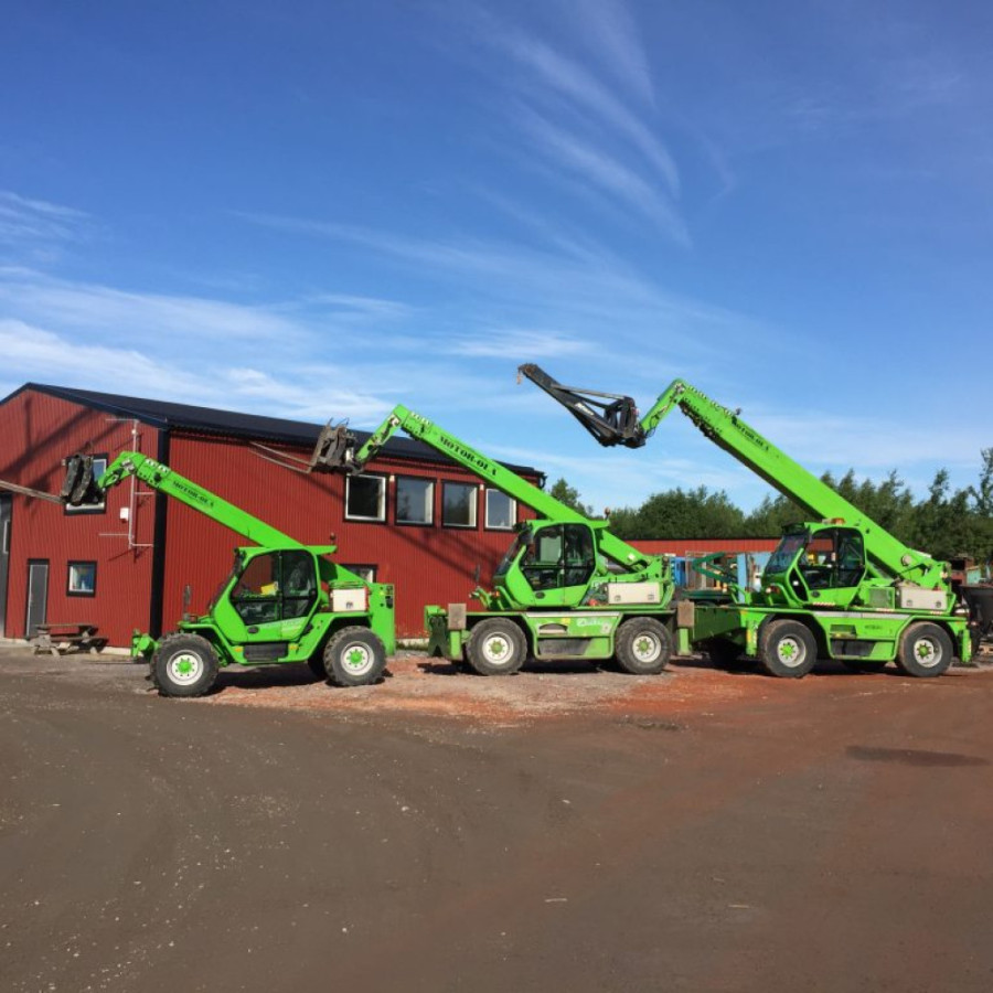 Vi erbjuder lyfthjälp upp till 71 meter med olika redskap såsom pallgafflar, sopskopor, personkorgar, vinschar. Med teleskoplastare blir arbetshöjden 26 meter och bredden på korgen är 4.5meter. Vi har runtomsvängande teleskoplastare med vridfäste för att komma åt överallt.